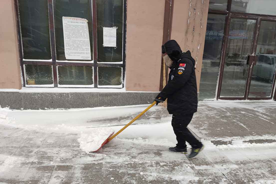 在风雪交加、寒气刺骨的恶劣天气下,全体人员对园区各角落进行扫雪除冰工作,为业主/客户的出行安全保驾护航。大家尽自己最大努力,即便凛冽的寒风吹在脸上,如刀割一样,但并没有影响辰星物业员工工作的热情。大家手冻红了,鞋也湿透了,头上盖着厚厚的白雪,脸上无处不在的雪水,顺着脸颊流淌下来,但是他们一点不在乎,依然像战士般在雪中战斗。