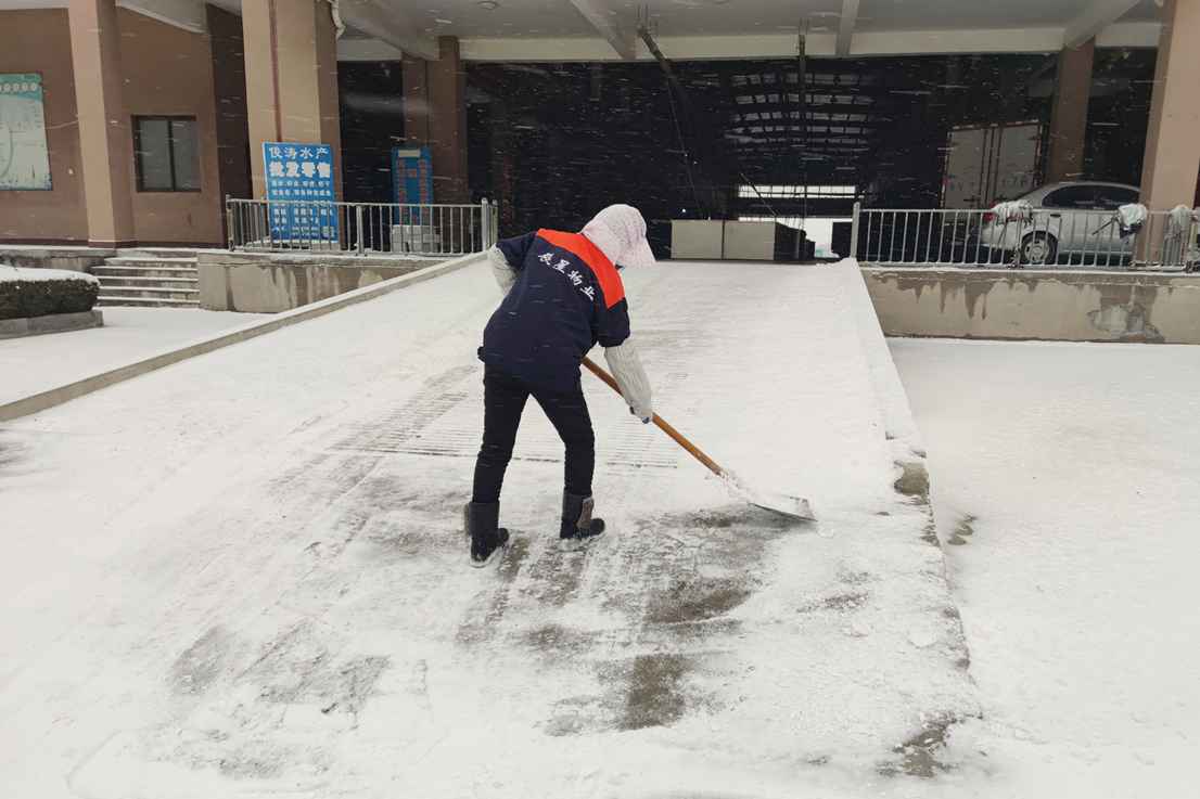 辰星物业员工早早就投入到清扫积雪的行动中来,